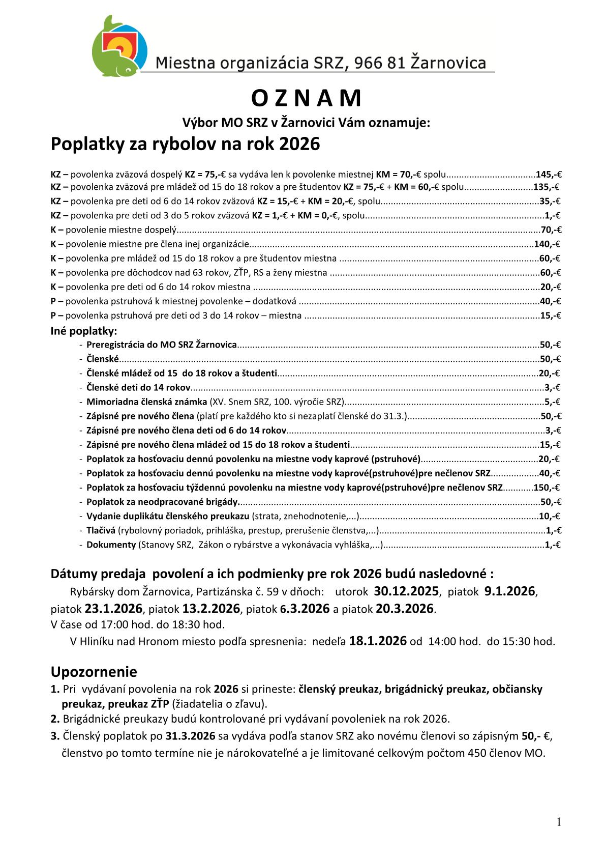 Povolenia pre členov MO SRZ