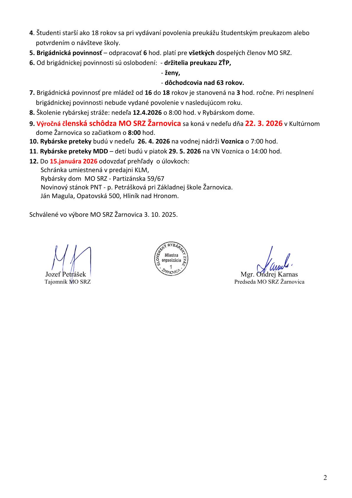 Povolenia pre členov MO SRZ