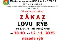Všeobecný zákaz ZÁKAZ LOVU RÝB: VN PUSTÝ HRAD, VN VOZNICA, VN KOPANICE OD 30.10.2025 - DO 12.11.2025